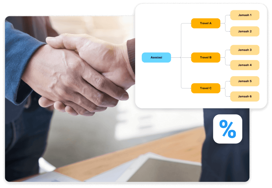Perluas Pasar dengan Pembiayaan Umrah dan Skema Komisi yang Menguntungkan. Bergabung dengan UmrahMudah memberikan peluang untuk memperluas market pembiayaan. Setiap cabang yang berhasil transaksi paket umrah akan mendapatkan komisi 80%, sementara induk atau kantor pusat menerima 20%. Dengan akses ke pasar umrah yang terus tumbuh, UmrahMudah membantu lembaga keuangan mencapai lebih banyak nasabah dan memperkuat posisi dalam pembiayaan umrah.