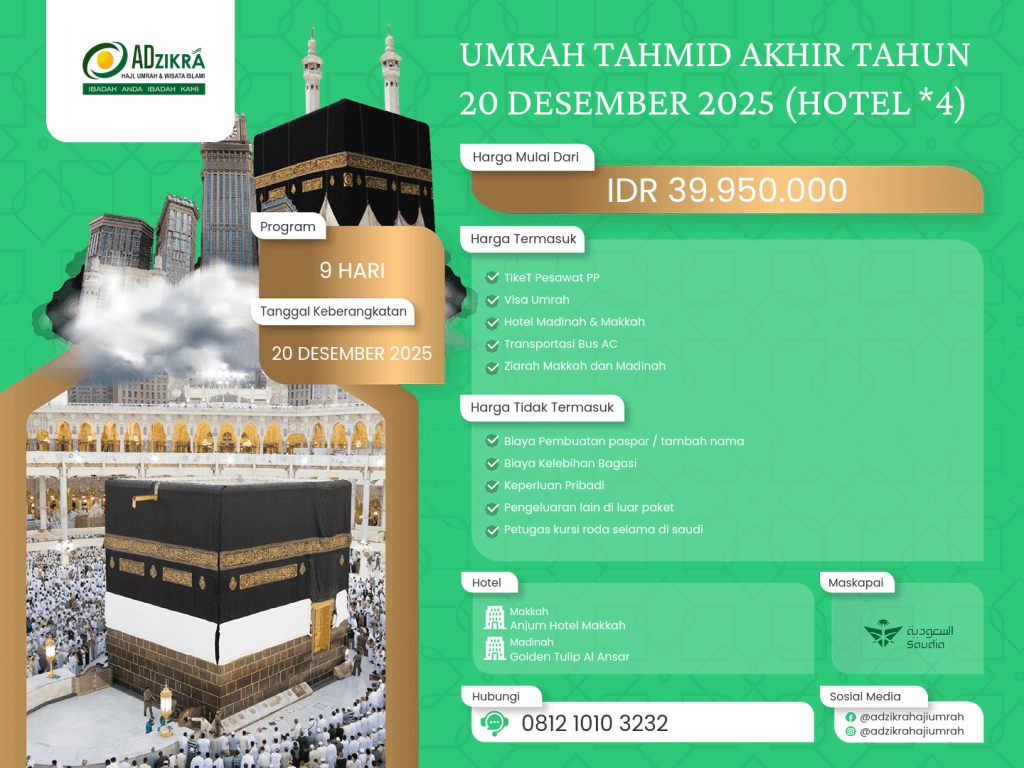 UMRAH TAHMID AKHIR TAHUN 20 DESEMBER 2025 (HOTEL *4)