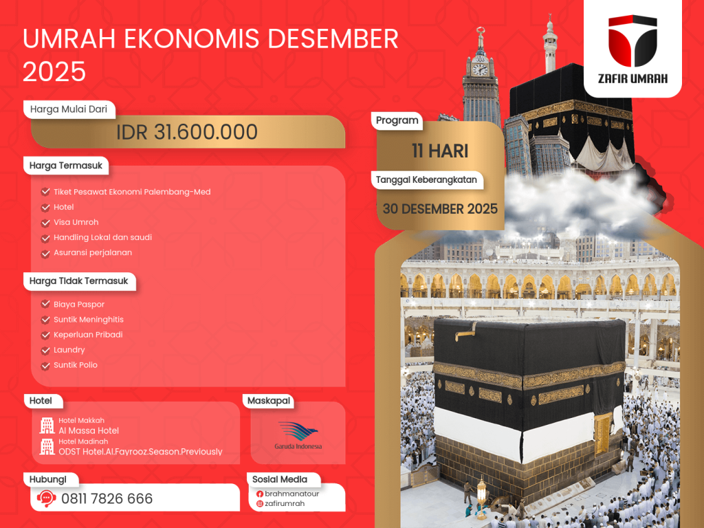 - Pelunasan Paling Lambat 2 bulan sebelum keberangkatan