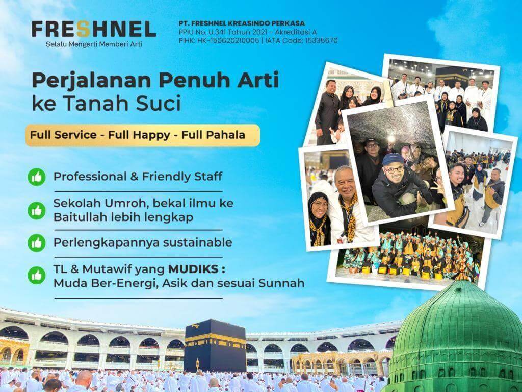 - Memberikan identitas resmi sebagai jamaah umroh Indonesia yang dikeluarkan melalui system SISKOPATUH dan identitas lainnya sebagai jamaah PT Freshnel kreasindo Perkasa.