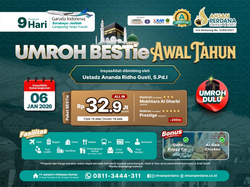 - Pembatalan lebih dari 30 hari sebelum keberangkatan, akan dikenakan biaya administrasi dan biaya-biaya lain yang telah dibayarkan oleh Ahsan Perdana ke vendor.