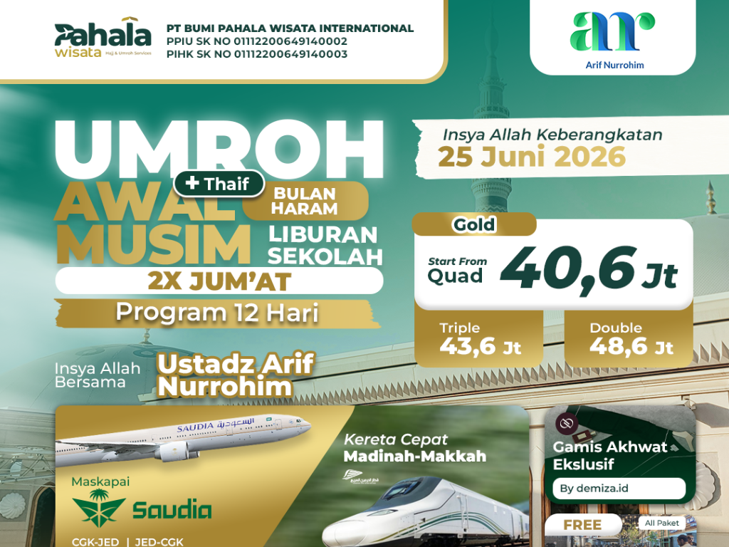[GOLD] UMROH AWAL MUSIM BULAN HARAM 2X JUMAT + THAIF (LIBURAN SEKOLAH) 25 JUNI 2026