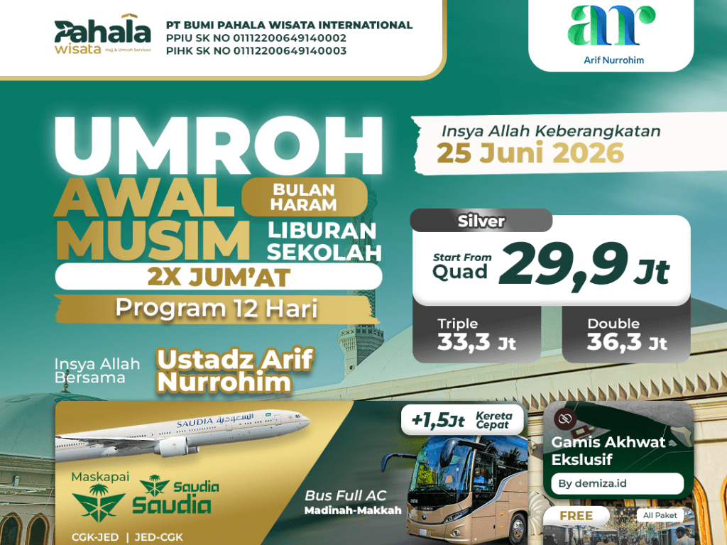 [PAKET SILVER] UMROH AWAL MUSIM BULAN HARAM 2X JUMAT (LIBURAN SEKOLAH) 25 JUNI 2026