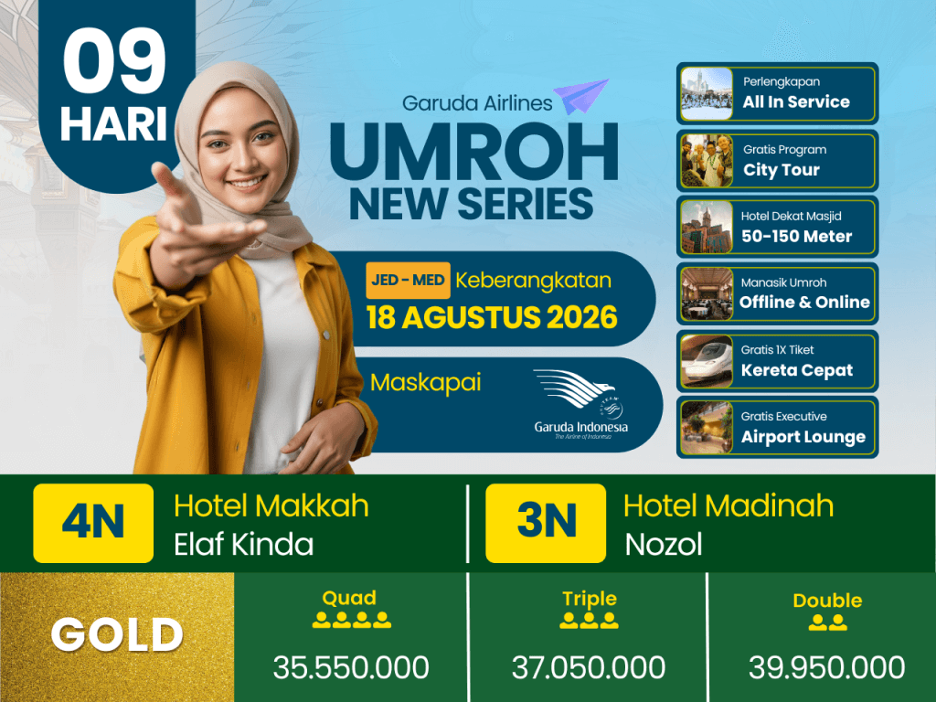 UMROH REGULAR GOLD 9D, 18 AGUSTUS 2026, BY GARUDA INDONESIA