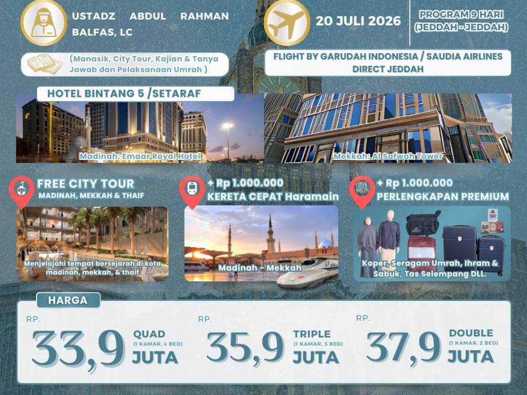 Umrah 3 Generasi 20 Juli 2026 ( 9 Hari )