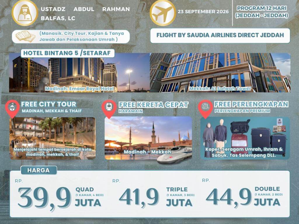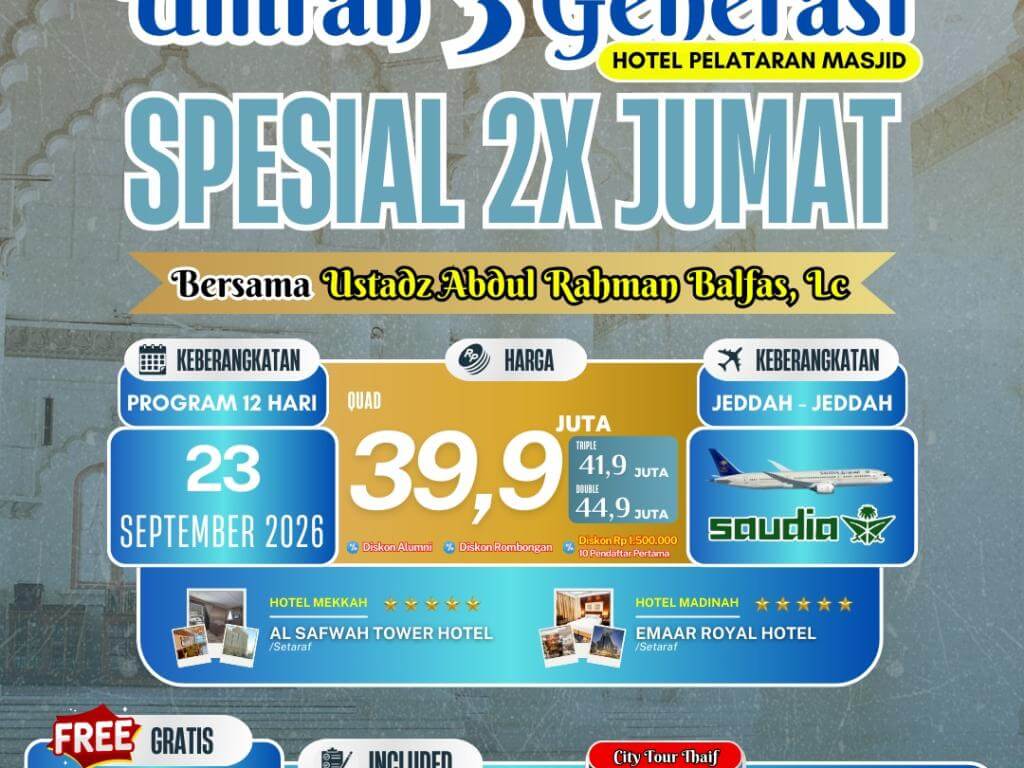 Umrah 3 Generasi 23 September 2026 ( 12 Hari )