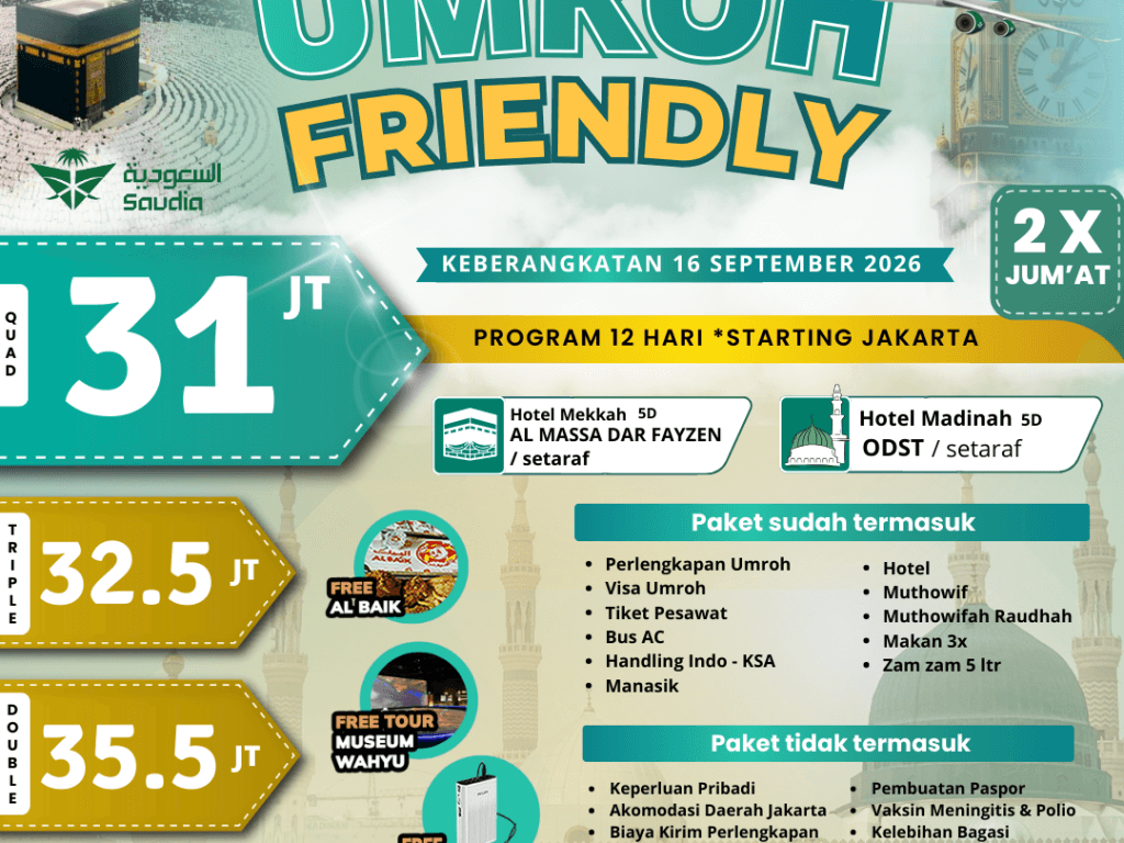 UMROH FRIENDLY 16 SEPTEMBER 2026 PROGRAM 12H