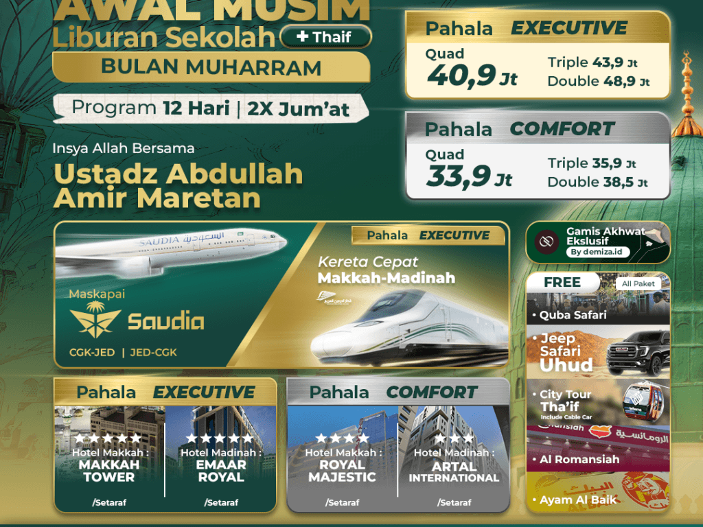 [EXECUTIVE] UMROH AWAL MUSIM BULAN HARAM 2X JUMAT (LIBURAN SEKOLAH +THA'IF) 24 JUNI 2026