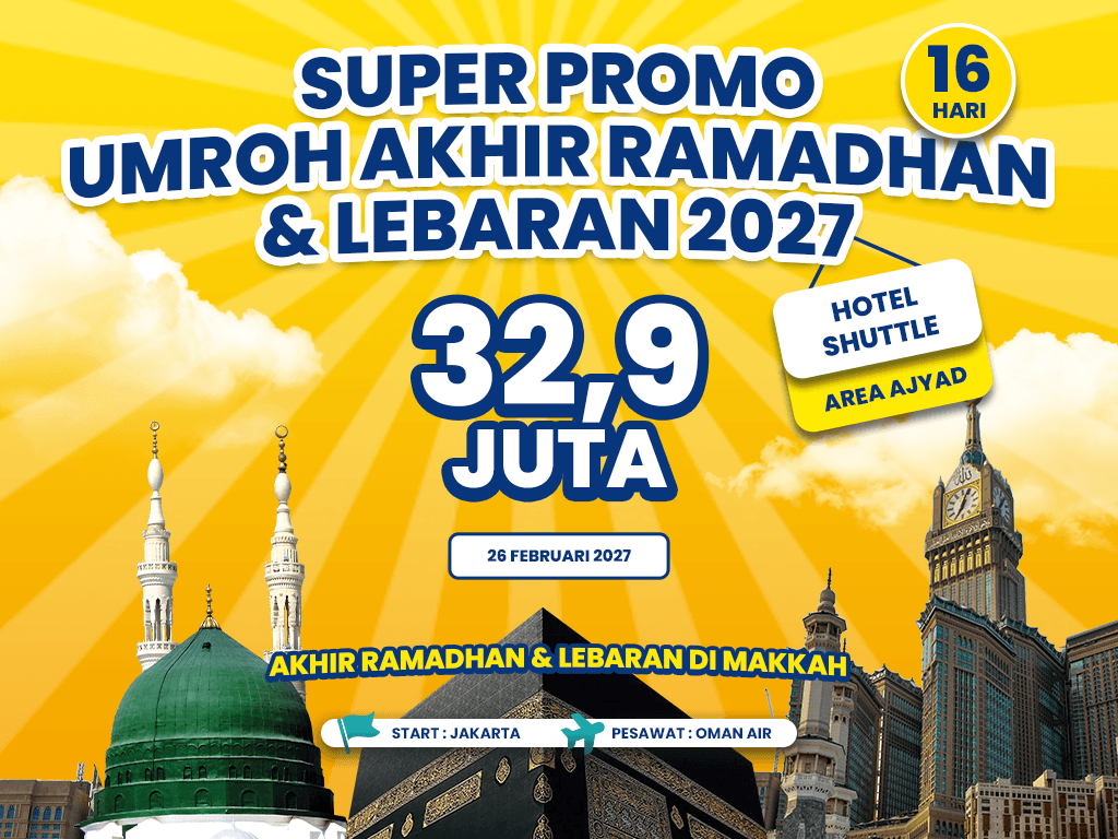 Umroh Akhir Ramadhan & Lebaran 2027 16 Hari Hotel Shutle Start Jakarta