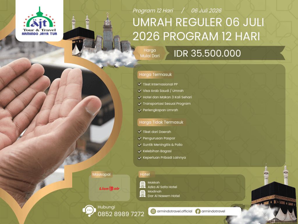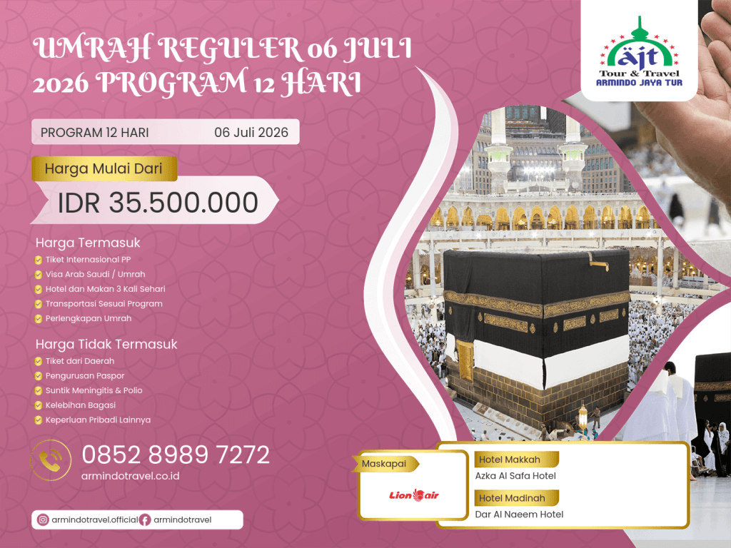 UMRAH REGULER 06 JULI 2026 PROGRAM 12 HARI ARMINDO JAYA TUR