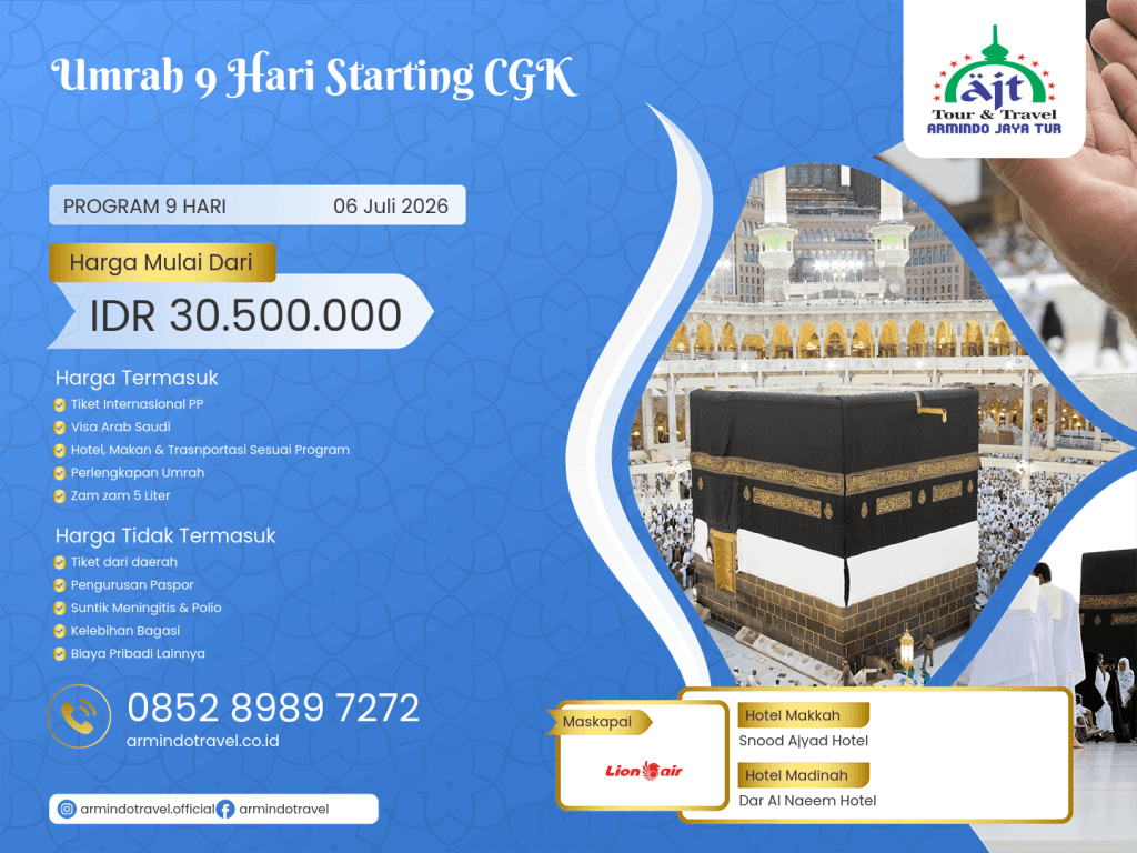 Umrah 9 Hari Starting CGK ARMINDO JAYA TUR