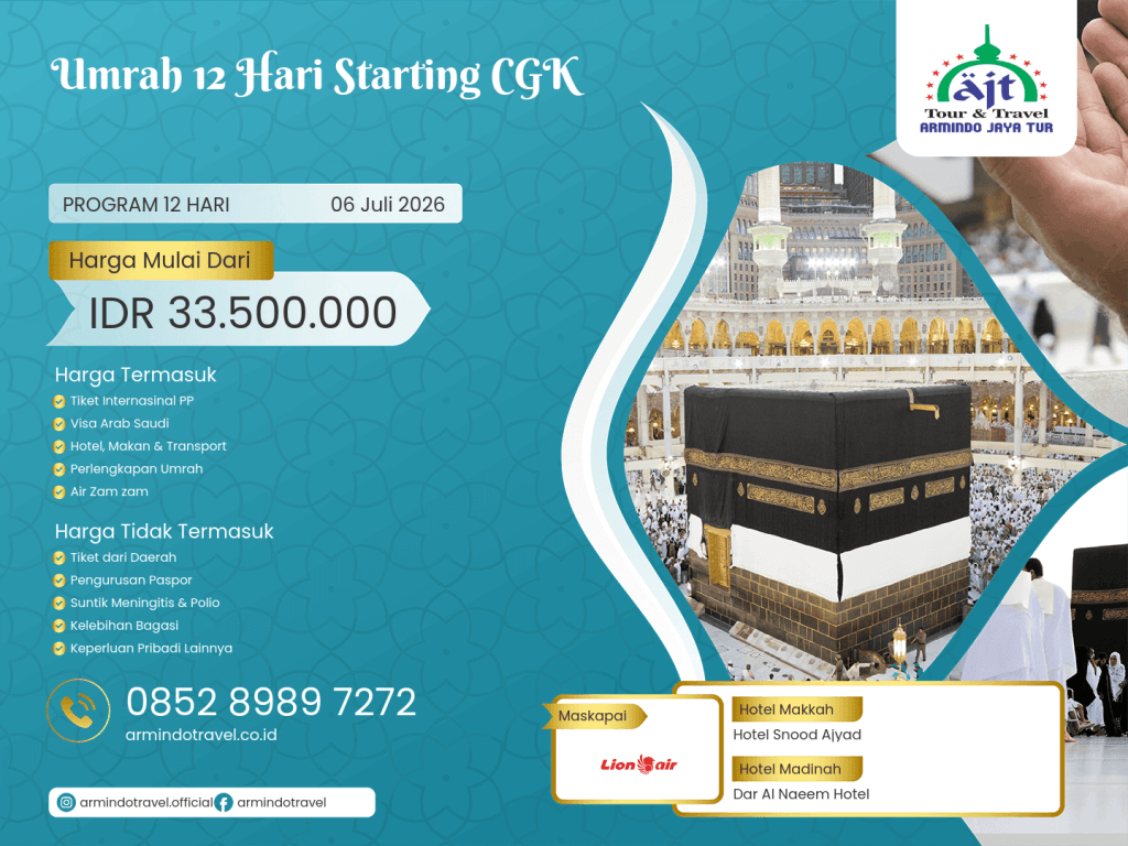 Umrah 12 Hari Starting CGK ARMINDO JAYA TUR